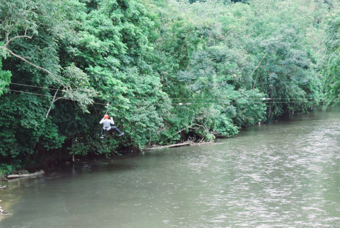 Flying fox sepanjang 80 meter itu membentang di atas Sungai Delang, Desa Lopus Kecamatan Delang. Tak kurang dari 13 detik, penikmatnya merasakan sensasi berseluncur di atas sungai tersebut. Wahana tersebut memiliki ketinggian hampir 10 meter dari air sungai. Sedangkan tempat pemberhentiannya, memiliki ketinggian sekira 7 meter dari air sungai. Di wahana Flying fox tersebut terdapat rumah pohon di kedua bahu sungai sebagai tempat memulai dan tempat pemberhentiannya.