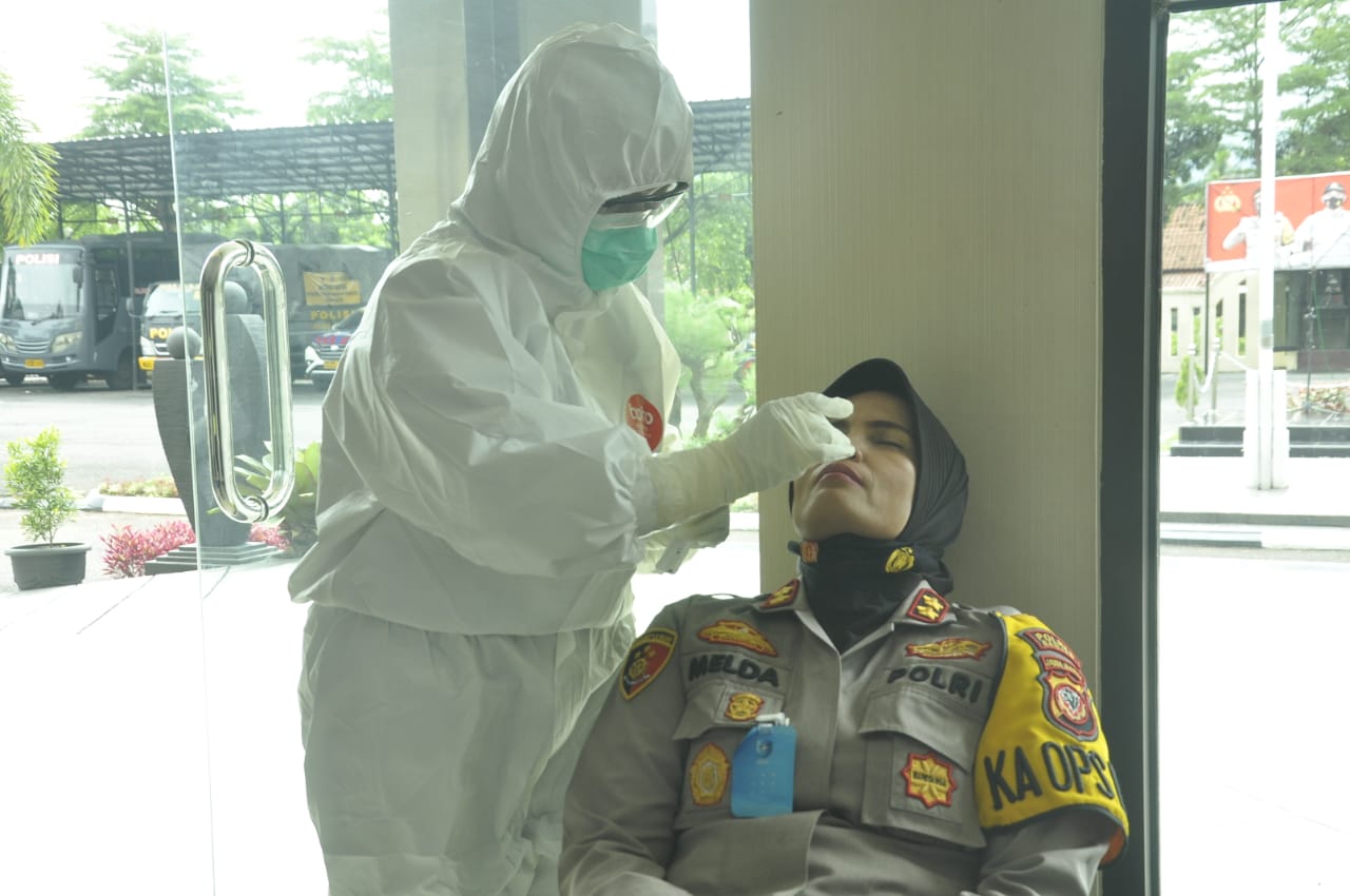 Kapolres Banjar beserta 40 Pejabat Utama dan Personel Polres Banjar menjalani swab test.