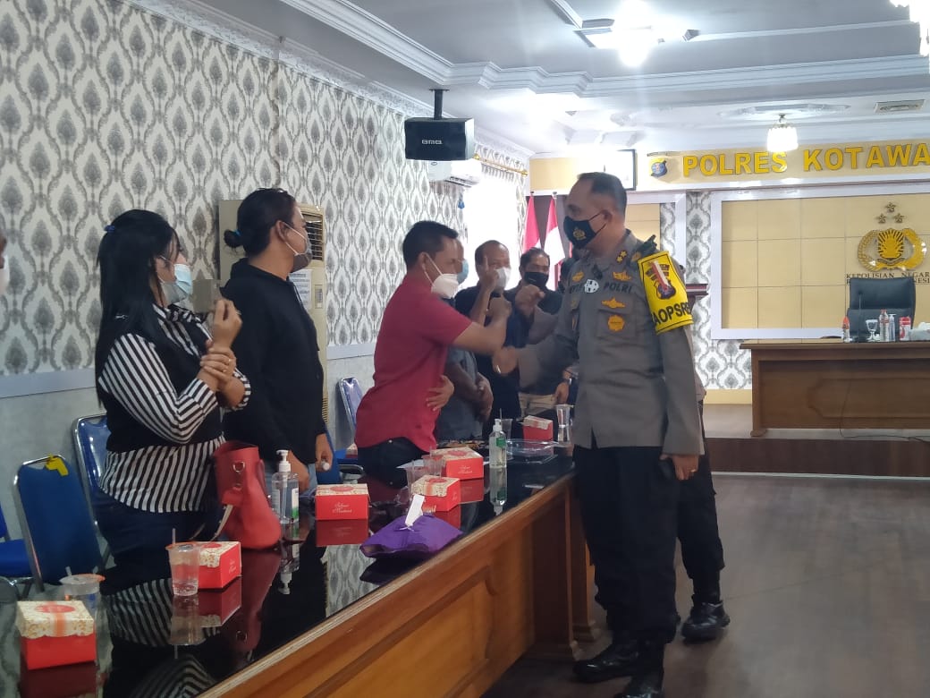 Kepolisian Resort (Polres) Kabupaten Kotawaringin Barat, menerima kunjungan dari Asosiasi Seniman Musik Kotawaringin Barat, di Aula Satya Prabuh Polres Kobar. Sabtu, 30 Januari 2021.