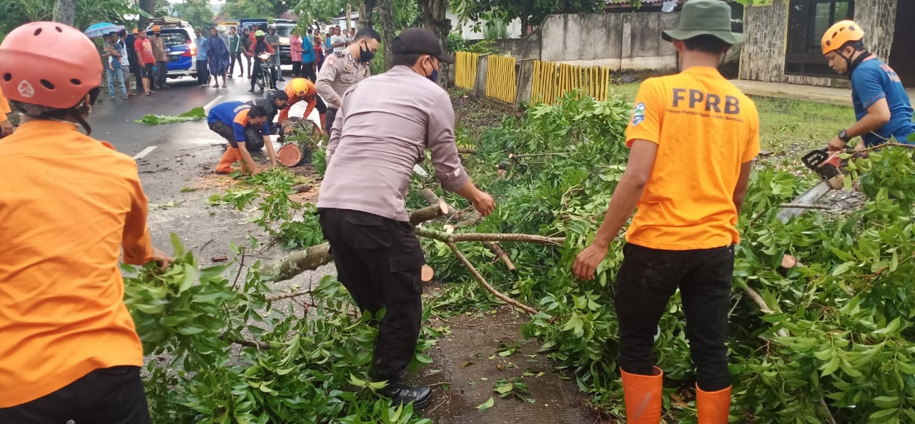 Dalam keadaan hujan lebat Setidaknya 10 anggota Polsek Banjar, melaksanakan tanggap bencana angin puting beliung mengamuk di sepanjang jalan Sumanding kulon RT.04 RW.19 Kelurahan Mekarsari Kecamatan Banjar Kota Banjar, sehingga menyebabkan beberapa pohon tumbang menutup jalan yang menghubungkan ke arah jalur wisata Pangandaran.