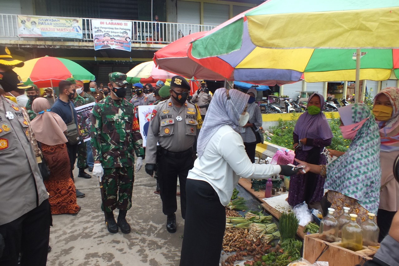 Selain membagikan masker anggota Kodim 1014 /Pbn bersama Tim gabungan juga memberikan himbauan pentingnya memakai masker untuk mencegah penyebaran Covid-19, Rabu (3/2/2021).