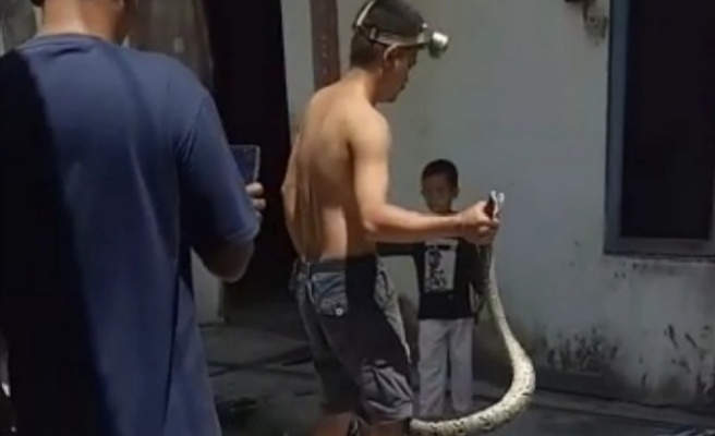 Diaz mengaku sempat kesulitan menangkap ular tersebut lantaran masuk ke dalam air sumur. Namun selang beberapa saat akhirnya ular tersebut berhasil ditangkap.