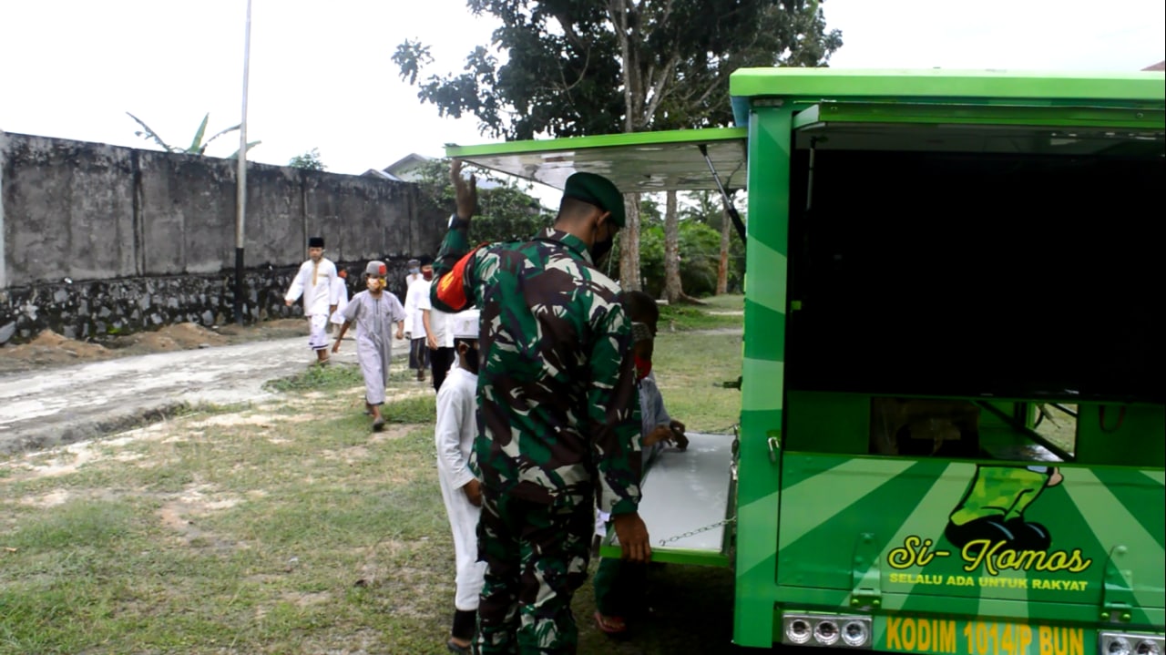 “Pada masa pandemi yang saat ini kita alami adalah waktu yang sangat pas untuk Si-Komos terjun langsung ke desa – desa, karna anak – anak sekarang melaksanakan kegiatan belajar dengan sistem online jadi dengan datangnya Si-Komos diharapkan dapat menggugah semangat untuk membaca kembali”, Kata Babinsa Kumai Serda Aldi.