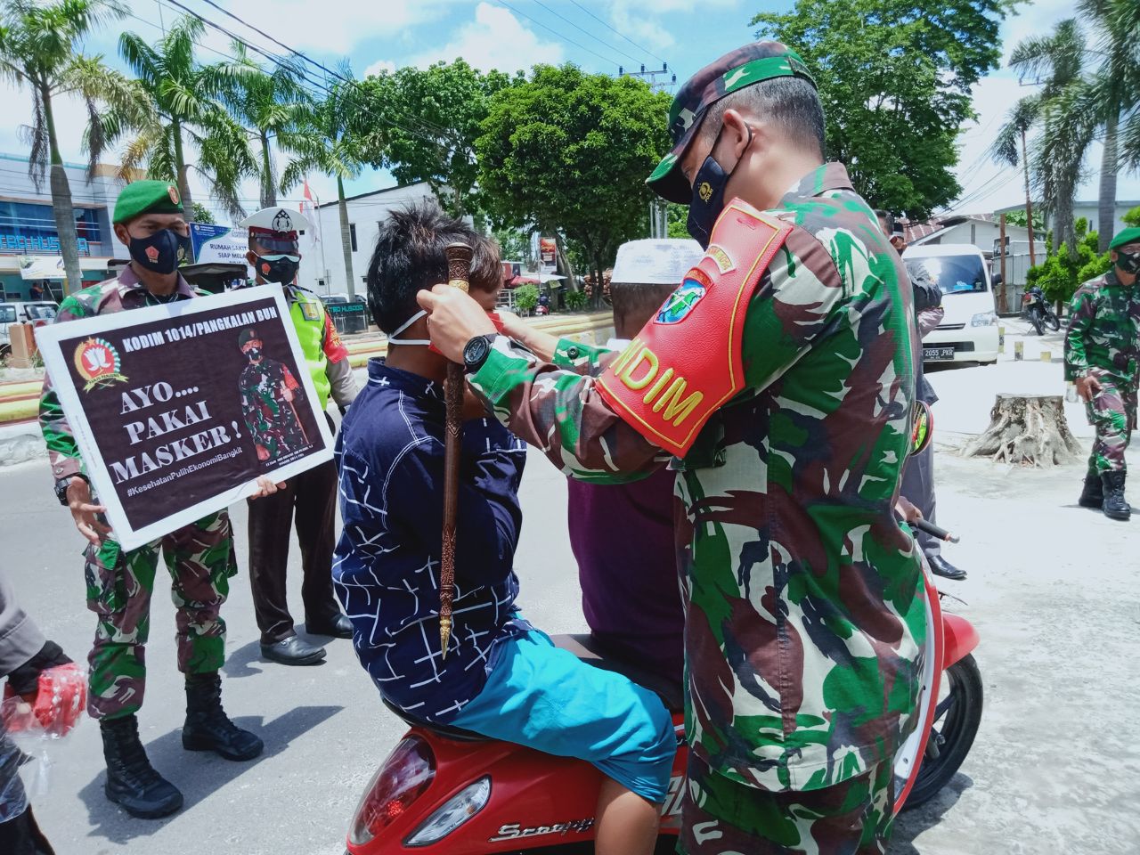 Saat dikonfirmasi perihal kegiatan tersebut Jum’at, ( 19/03 ) Komandan Kodim 1014 /Pbn Letkol Arh Drajad Tri Putro yang memimpin langsung kegiatan pembagian masker mengatakan, bahwa hal itu sebagai bentuk pelayanan kepada masyarakat mengajak kepada semua warga masyarakat untuk disiplin Bermasker.