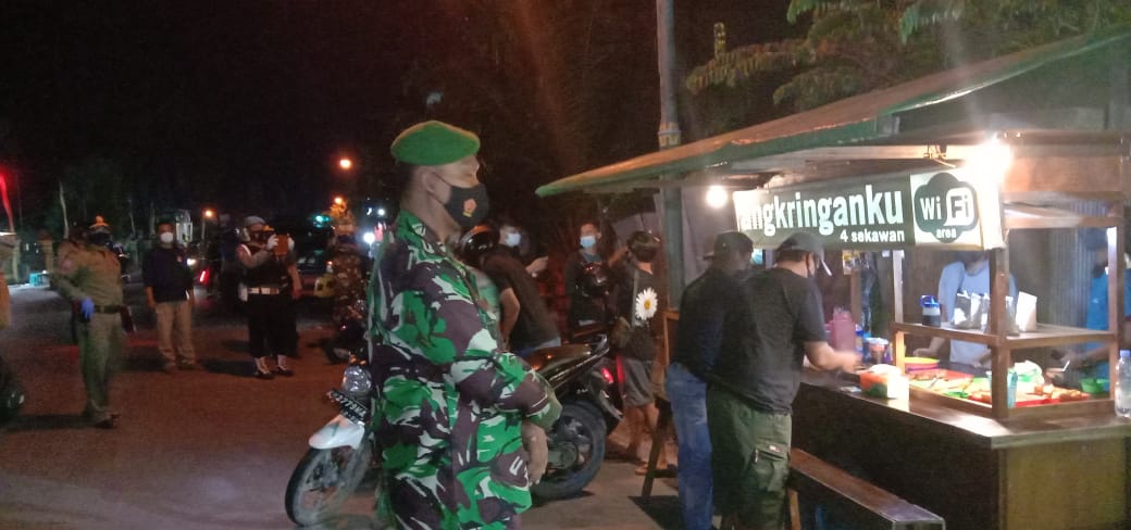 Petugas menyisir kawasan Pangkalan Bun yang ditengarai masih terjadi kerumunan Massa. Dengan tegas, sejumlah petugas mendatangi sejumlah warung kopi dan tempat kongkow dipinggir jalan.