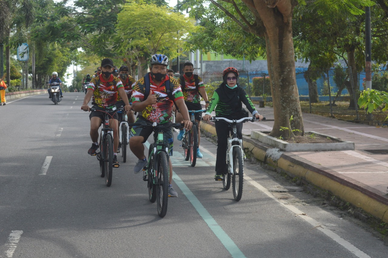 Kali ini, jajaran Kodim 1014 /Pbn melaksanakan sepeda santai/Gowes berkeliling Kota Pangkalan Bun, Kamis (18/03/2021).