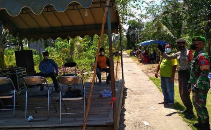 Babinsa Teluk Pulai anggota Koramil 1014 - 02/ Bersama Bhabinkamtibmas Polsek Kumai membubarkan acara hiburan warga yang sedang melaksanakan resepsi pernikahan.